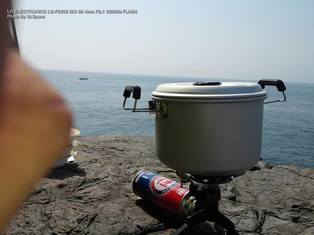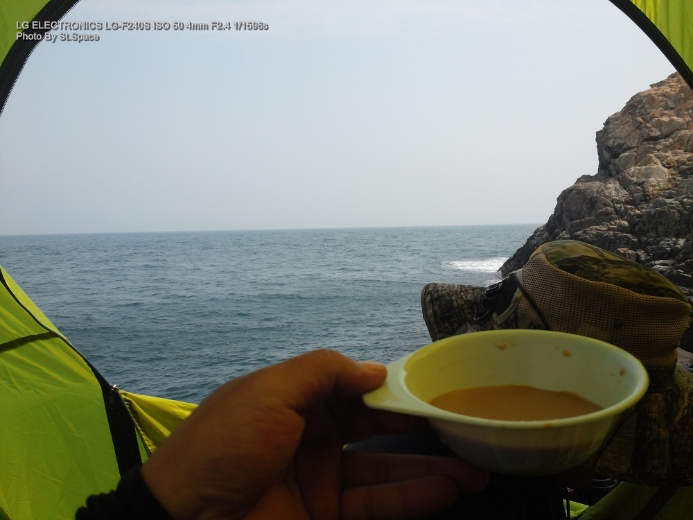 코펠의 밥공기에 커피를 따라서 바다를 감상하면서 모닝커피를 마시는데.... 마치 사약받은 기분 어쩔?
