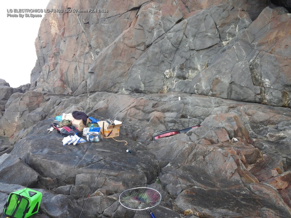 새벽에 붉은바위포인트에서 내리고, 낚시 캠핑을 위한 텐트를 치지 않고 낚시만 하다가, 날이 밝은 뒤 점심 께 쯤 흰 여 포인트로 이동했어요.