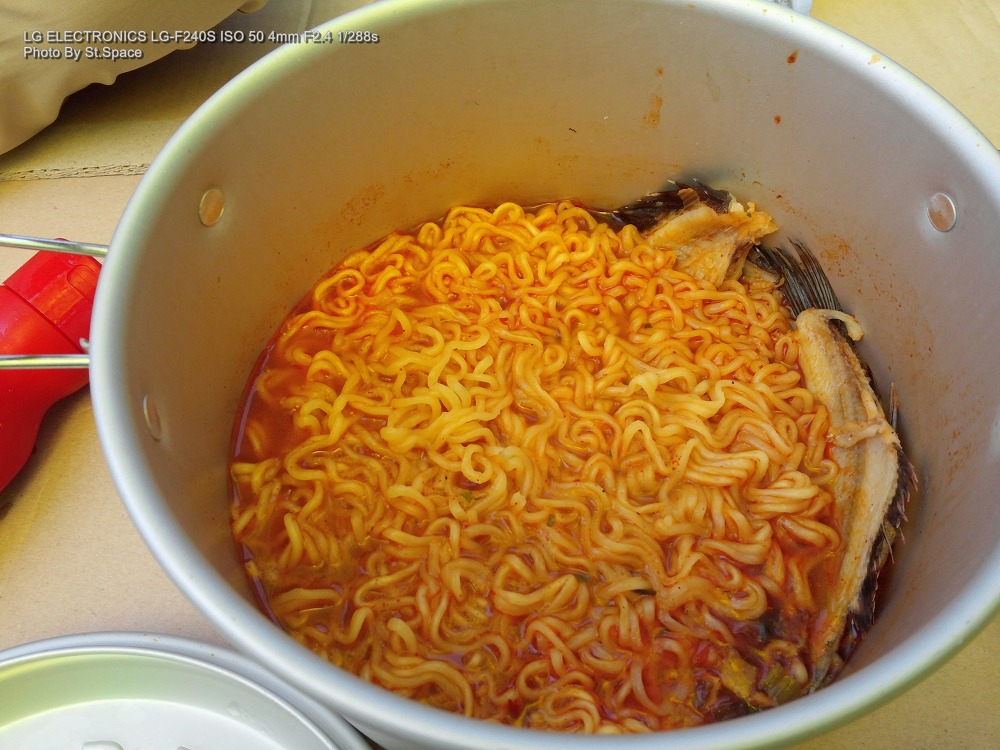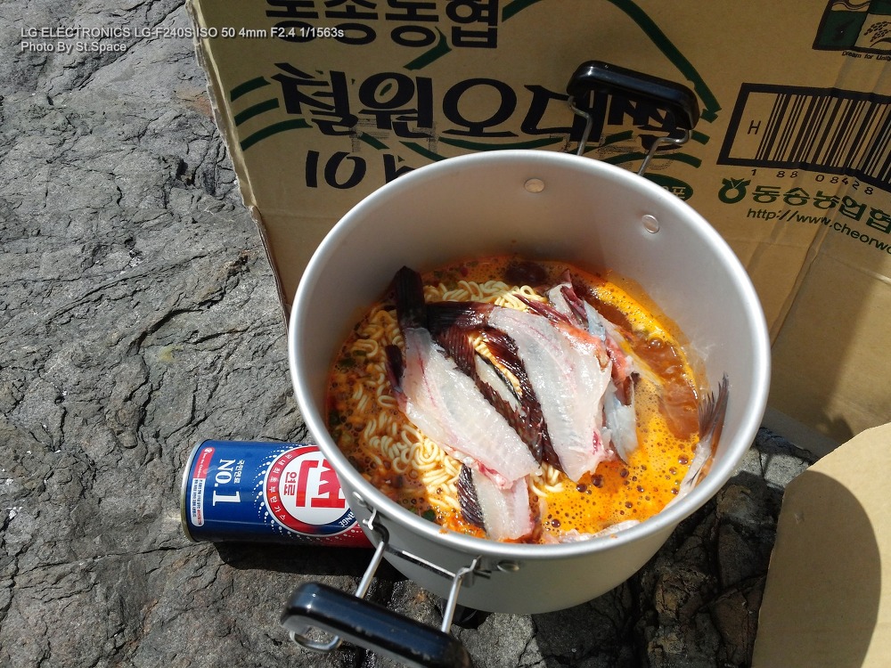 노래미 몇 마리를 회치고, 남은 서더리를 이용해서 라면과 함께 끓여서 늦은 점심 식사를 해봅니다.