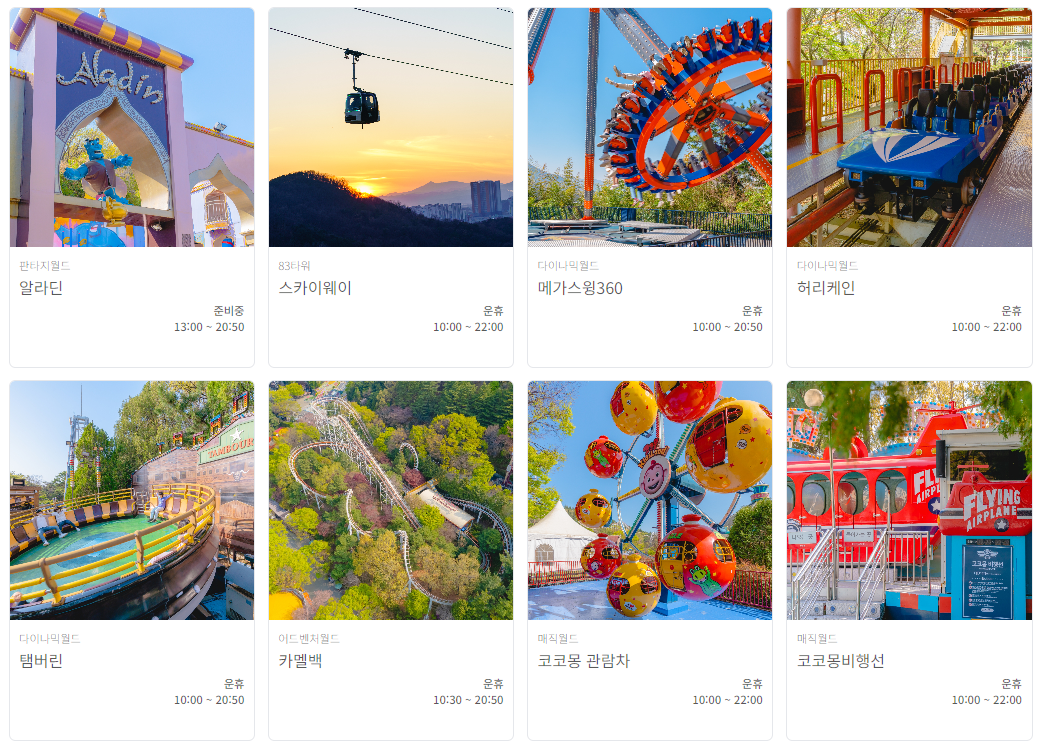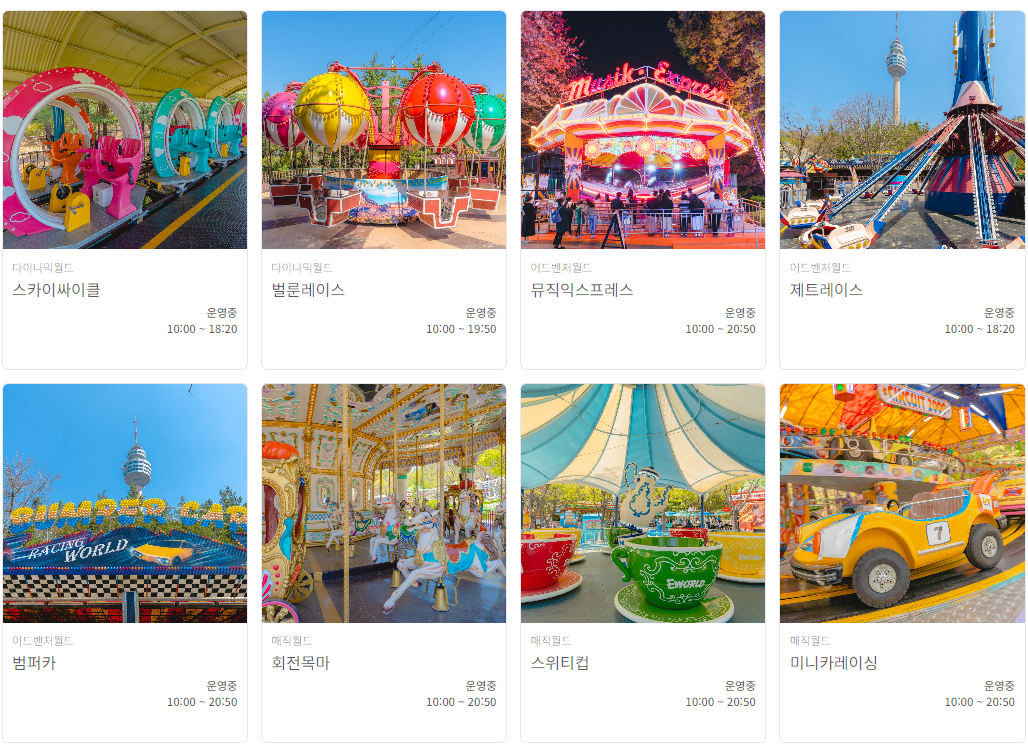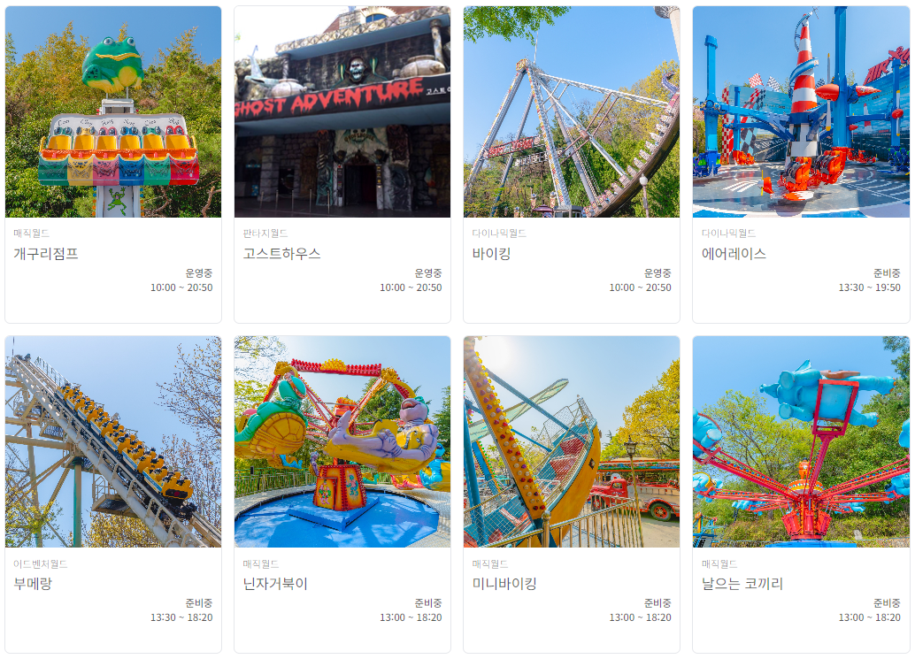 - 자유이용권: 입장료 포함된 가격으로, 주요 놀이시설 자유이용 가능.
