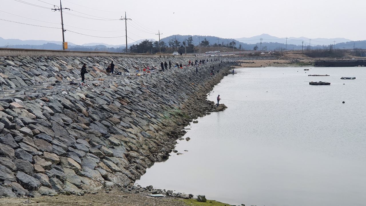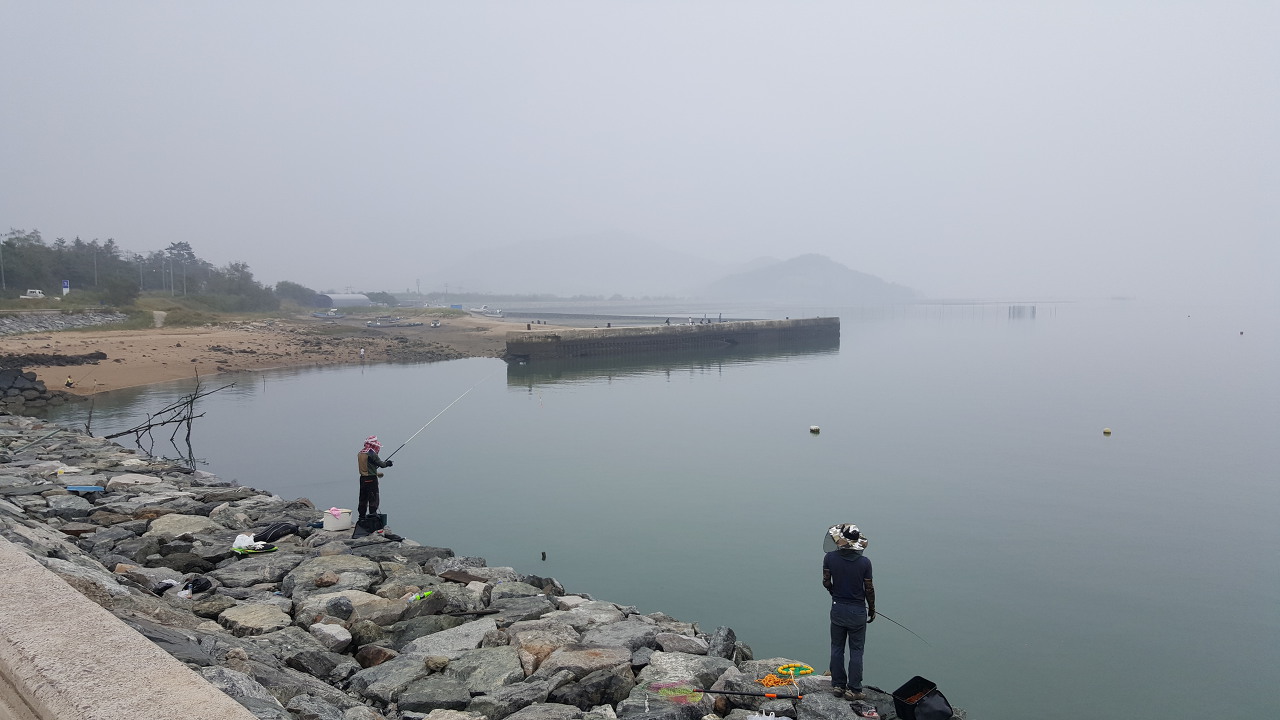 해수욕장 해변은 수심이 낮아서 낚시하기에 적합해 보이진 않네요.