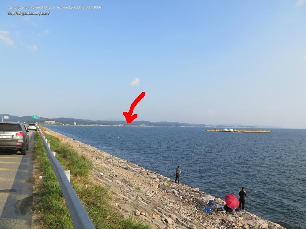 본능적으로 낚시터를 감지하는 능력으로 직감적으로 바다좌대낚시터라는 것을 간파하고 매의 눈으로 15배 줌으로 땡겨서 살펴보았죠.