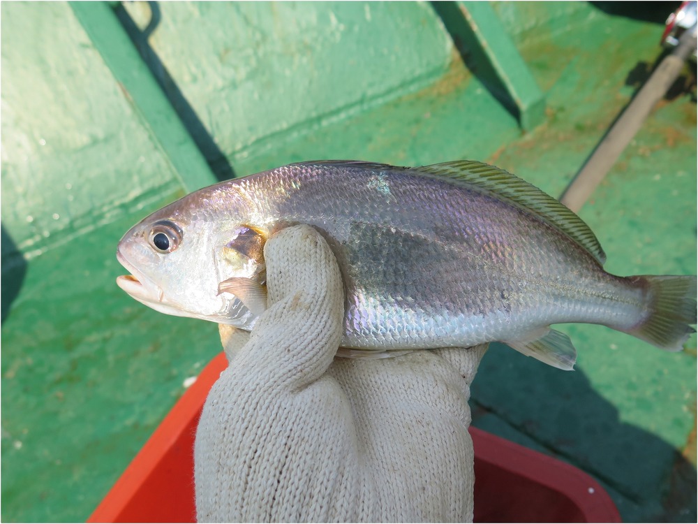 그러던 중에 덜컥 보구치라고 부르는 백조기가 낚입니다.