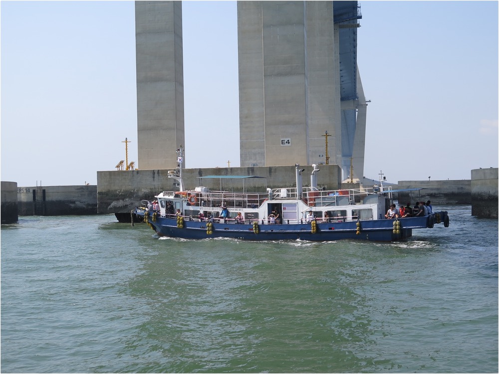 출항하고 10분이 안되게 달려서 인천대교 아래의 교각에 배를 대고 전어 낚시가 시작되었어요.