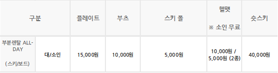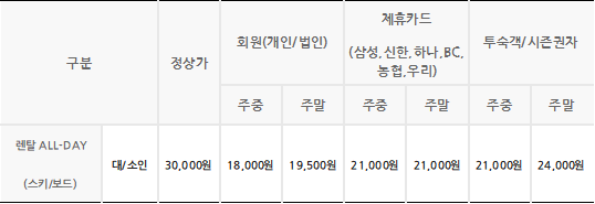 휘닉스 스노우 파크 장비 렌탈 비용 및 할인 정보