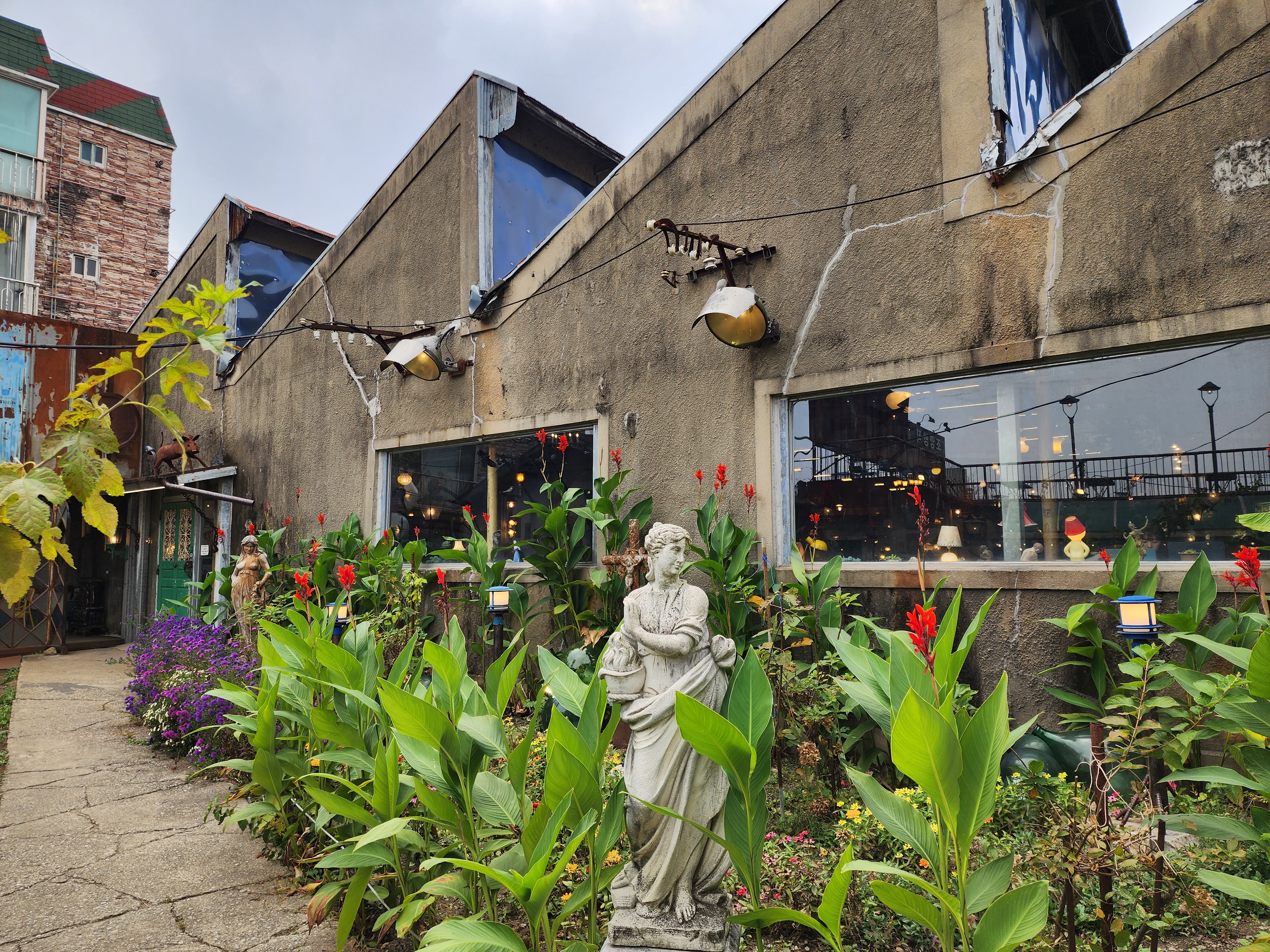강화도의 유명한 카페인 조양방직카페는 기존의 방직 공장을 개조하여 만들어진 공간입니다. 공장의 옛 모습을 간직하고 있어 독특한 분위기를 자아내며, 내부에는 다양한 조형물이 전시되어 있어 볼거리가 풍부합니다. 바로 앞에 무료 주차장이 있어 접근성도 좋습니다.