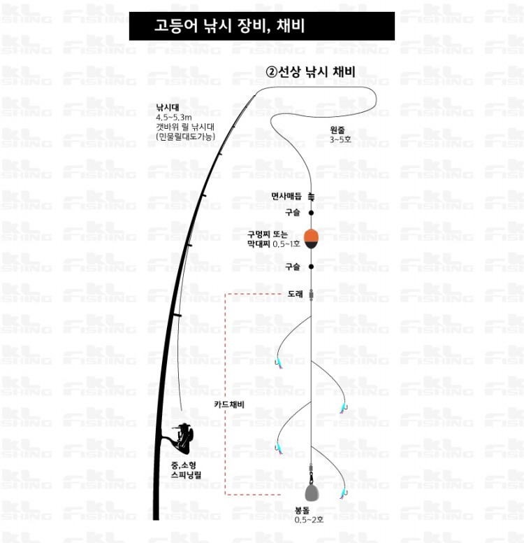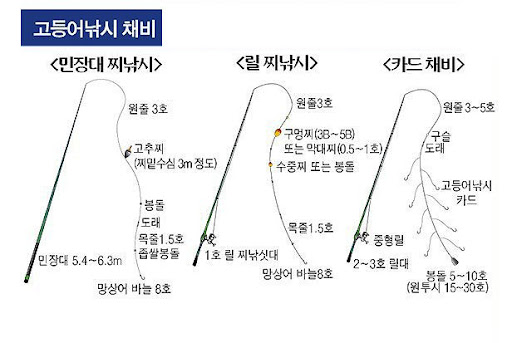 고등어 낚시에 필요한 장비는 다음과 같습니다: