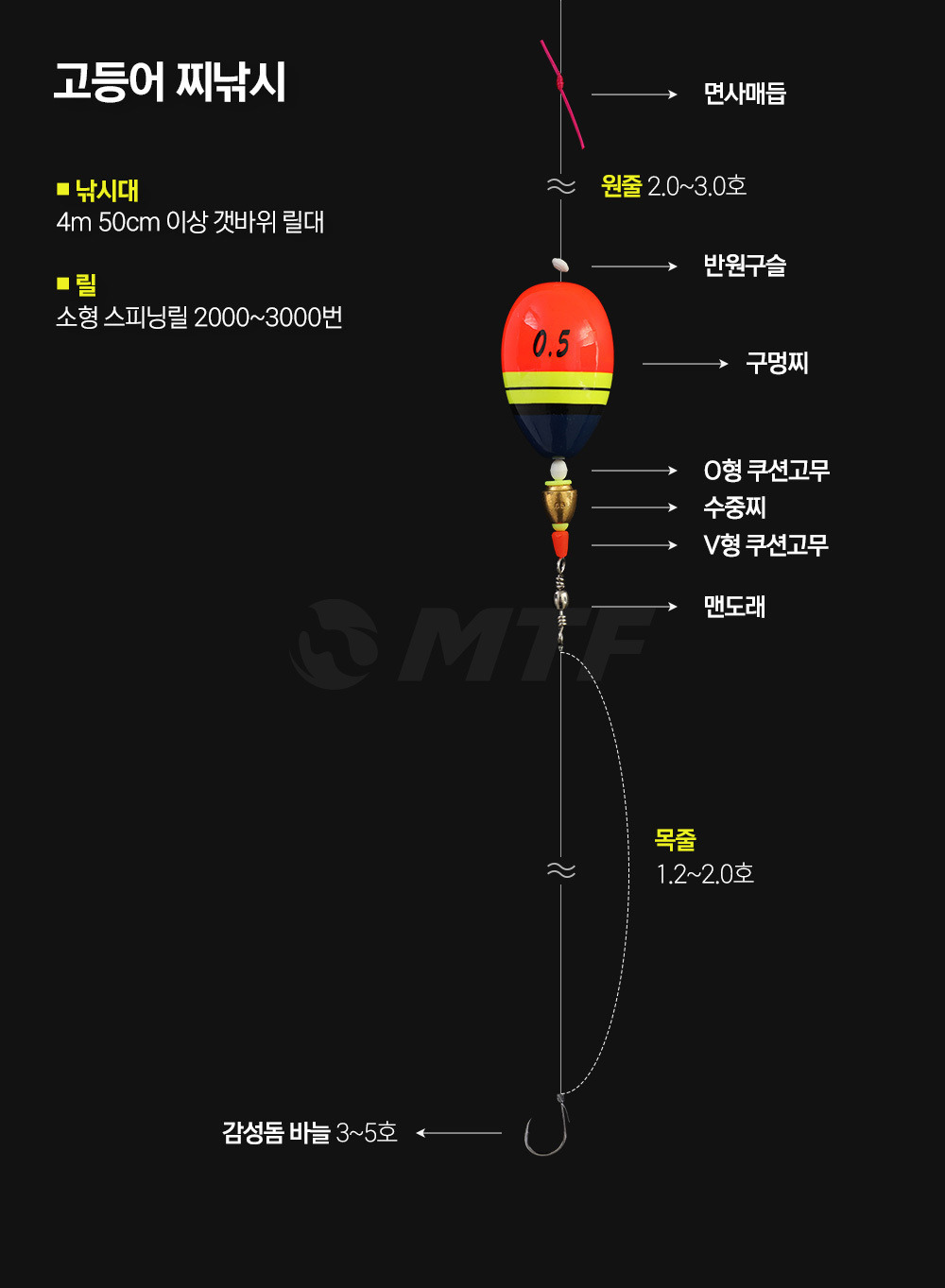 - 줄의 두께: 0.8mm에서 1.5mm 사이의 두께가 적당합니다. 이 두께는 고등어의 힘을 감당할 수 있으며, 손쉬운 조작이 가능합니다.