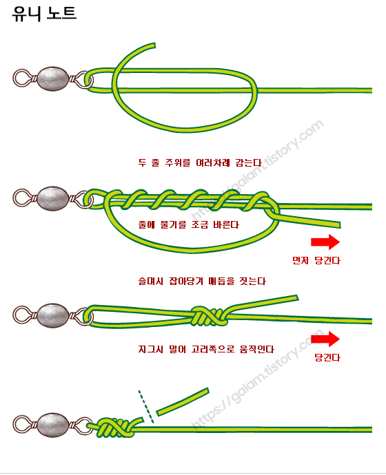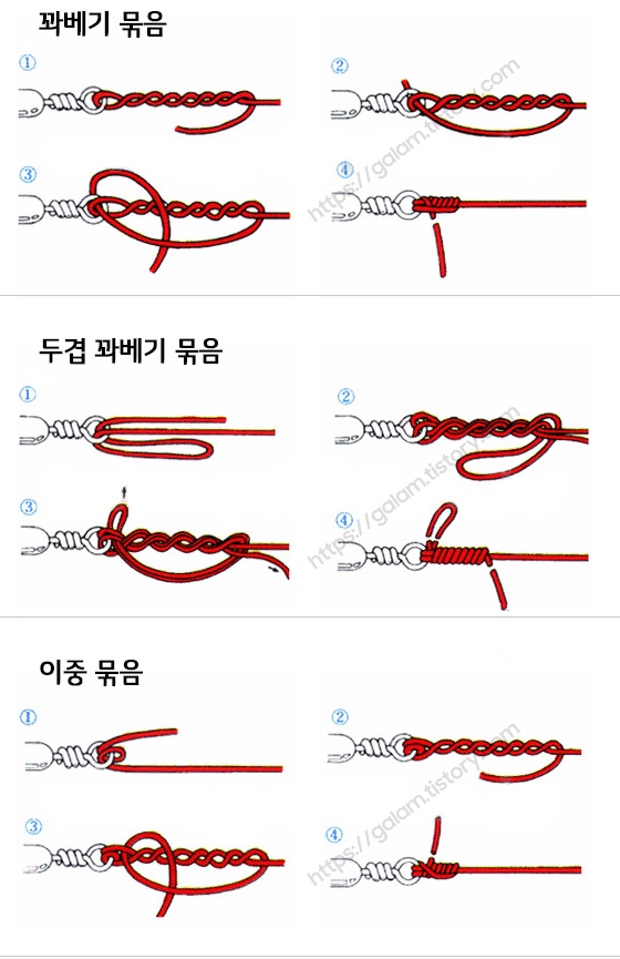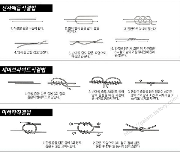 낚시에서 많이 사용하는 매듭법