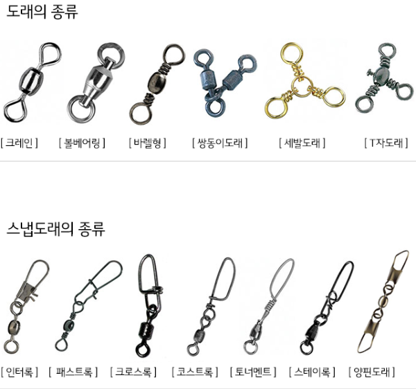 스냅 도래: 스냅 도래는 루어와 봉돌, 찌 등을 빠르게 교체할 수 있도록 도와주는 특별한 형태의 도래입니다. 빠른 교체가 필요한 상황에서 효과적으로 사용됩니다.