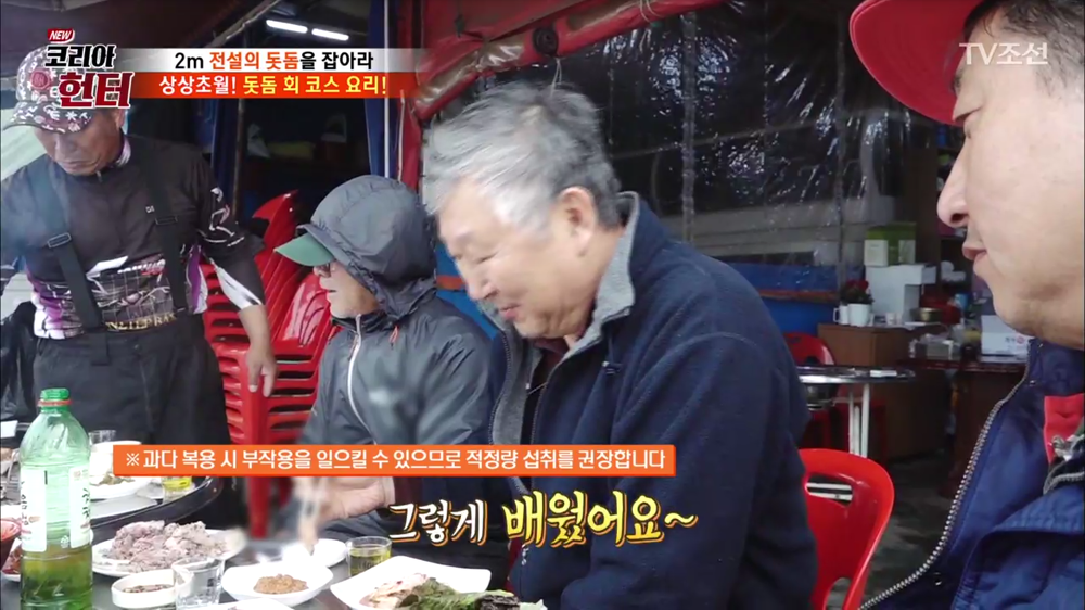 또 다른 헌터는 돗돔의 간이 피부 건강에 좋고 골다공증 예방에도 효과가 있다고 설명하셨는데, 이 분은 병원 원장님이신 것으로 알려져 있습니다.