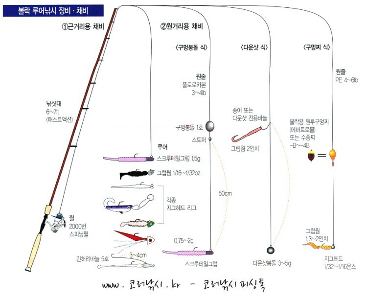 - 루어: 연질형의 볼락 전용 루어를 사용해야 합니다.