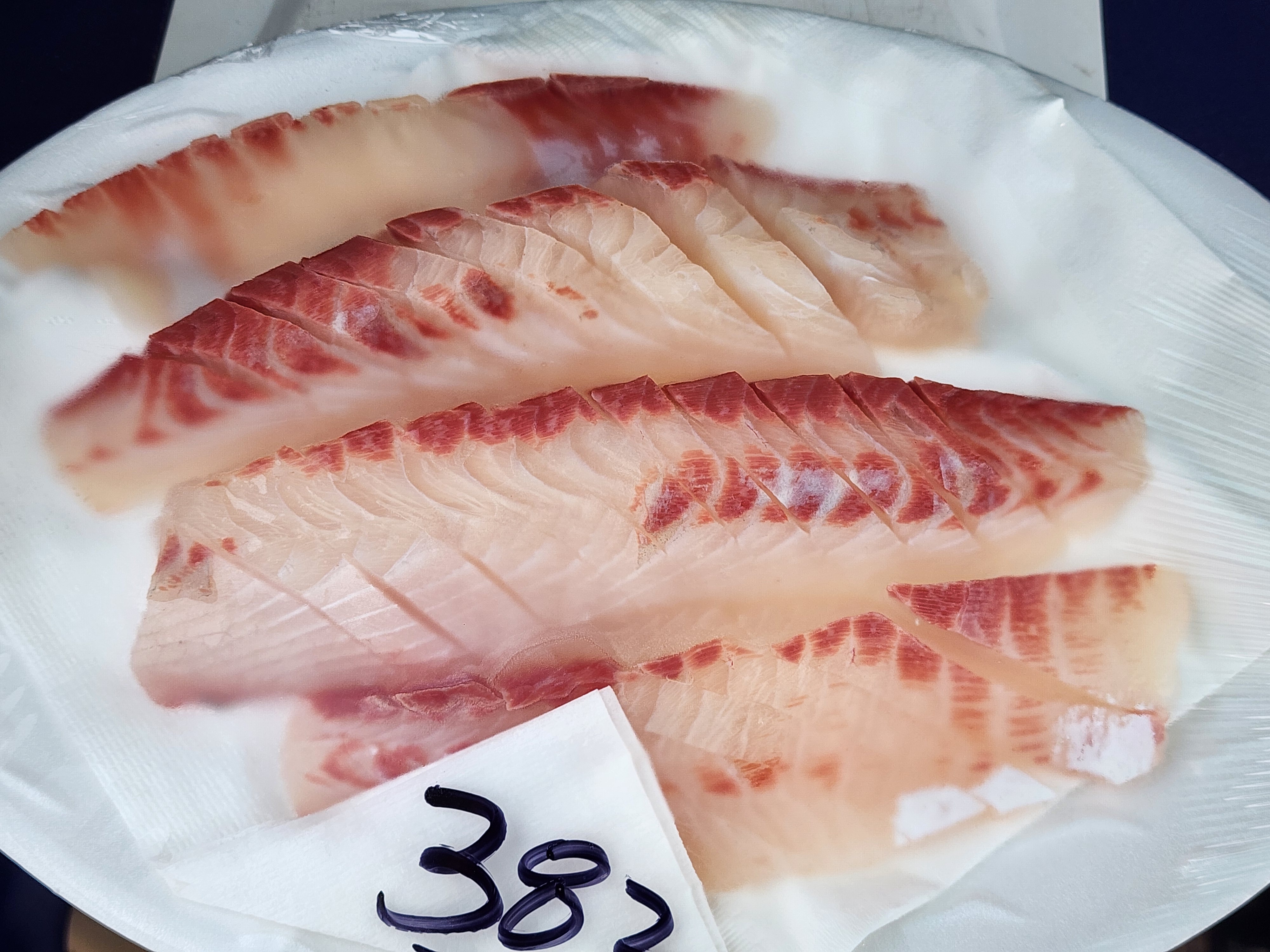 낚시를 시작한 지 약 1시간 후, 9시에 방류된 물고기들 중에서 첫 번째 무점매가리를 잡았습니다. 방류 후의 시간이 중요하기 때문에, 시작과 동시에 집중력을 발휘하는 것이 중요합니다. 오늘의 경우, 방류 후 1시간 이내에 첫 히트를 기록했습니다. 병어돔(무점매가리)은 낚시할 때도 손맛이 뛰어나며, 잡힌 후에는 신선한 회로 즐길 수 있어 많은 낚시꾼들에게 인기가 높습니다.