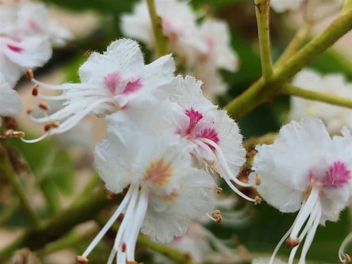 마로니에는 큼지막한 손바닥 모양의 잎이 3~9장 붙어 있으며, 이로 인해 ‘칠엽수’라고도 불립니다. 특히 한 나무에 7개의 잎이 많이 붙는데, 이것이 칠엽수의 유래입니다. 우리나라의 대부분 마로니에는 일본 원산으로 일본칠엽수라고 불립니다. 이들은 5~6월에 원추형 미색 꽃을 피우며, 열매에는 날카로운 돌기 같은 가시가 없습니다. 반면, 유럽 마로니에는 가시칠엽수라고도 불리며, 열매에는 날카로운 가시가 있습니다. 특히 마로니에 공원에 있는 칠엽수는 일본칠엽수가 맞습니다.