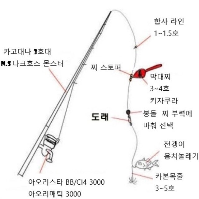 무늬오징어를 잡기 위해서는 각 낚시 방법에 따른 적절한 무늬오징어 낚시 채비가 필요합니다. 에깅 낚시에는 에깅대, 인조미끼인 에기, 2500-3000번 릴, 그리고 합사 원줄을 준비해야 합니다. 무늬오징어 낚시 생미끼 낚시 채비에서는 2호 이상의 낚싯대, 생미끼 전용 바늘, 그리고 원줄과 목줄의 조합이 필요합니다. 야엔 낚시의 경우 감성돔 바늘을 사용하며, 드랙 조절이 매우 중요합니다. 각재기나 어랭이와 같은 생미끼를 사용하는 경우, 기포기를 이용해 미끼를 최대한 오래 살리는 것이 낚시의 성공률을 높이는 열쇠입니다.