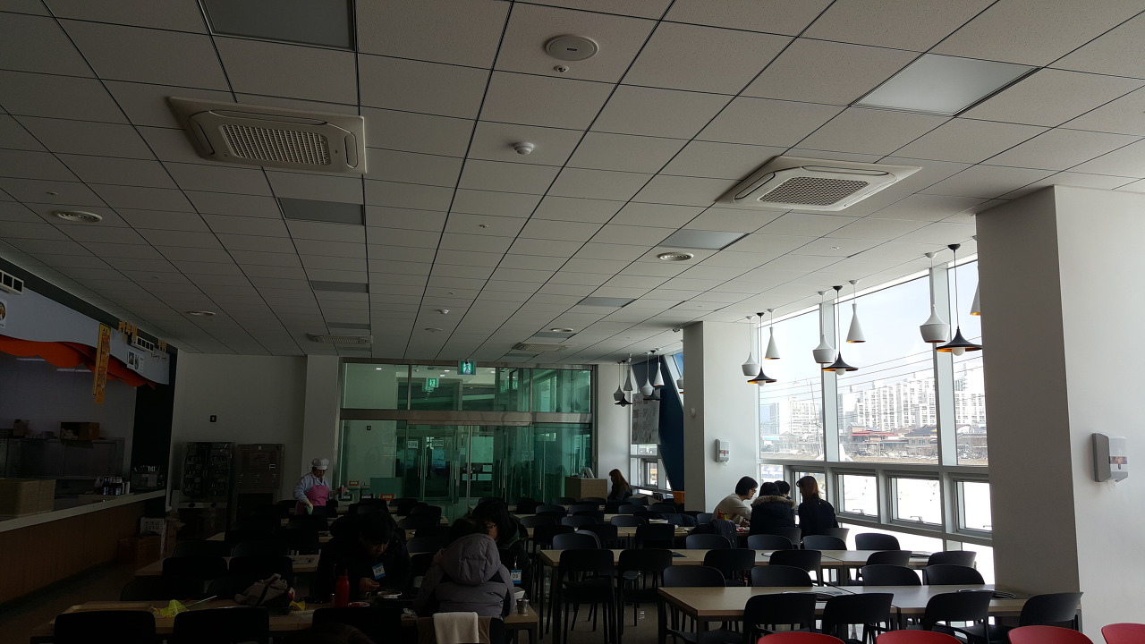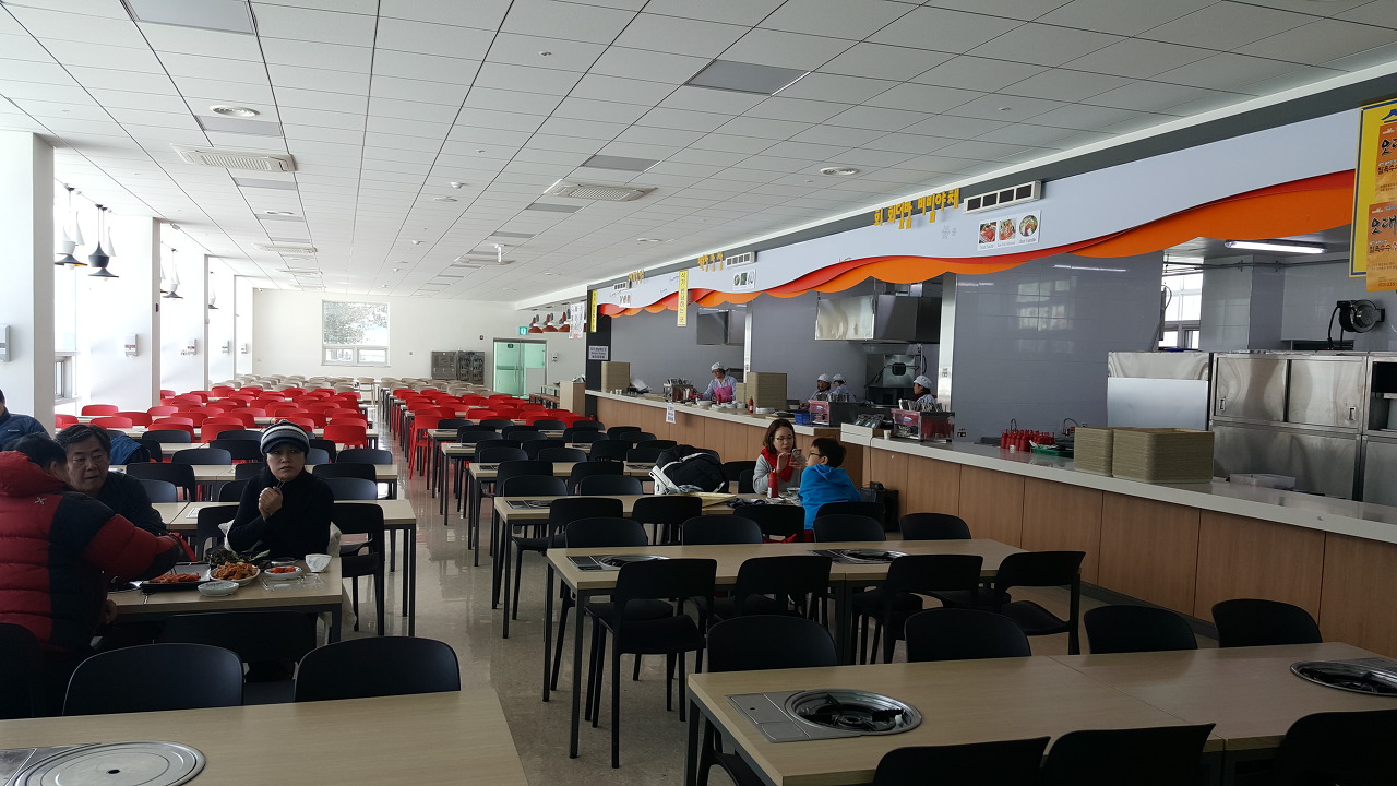 고속도로 휴게소의 식당처럼 입구에서 메뉴를 골라 결제하고 식권을 받아서 알림이 뜨면 받아오는 방식으로 바뀌었어요.