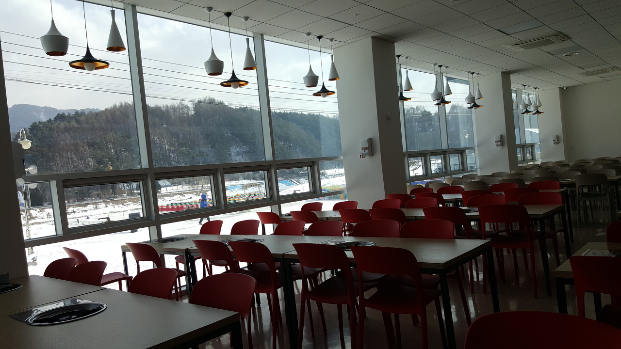회센터 창가 쪽에서는 하얀 설경의 축제장을 내다보면서 식사를 할 수 있게 멋지게 꾸며져 있네요.