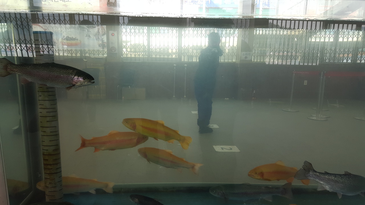 매표소 안의 사람 숫자보다 매표소 한가운데에 놓인 수족관의 송어 숫자가 훨씬 더 많습니다.