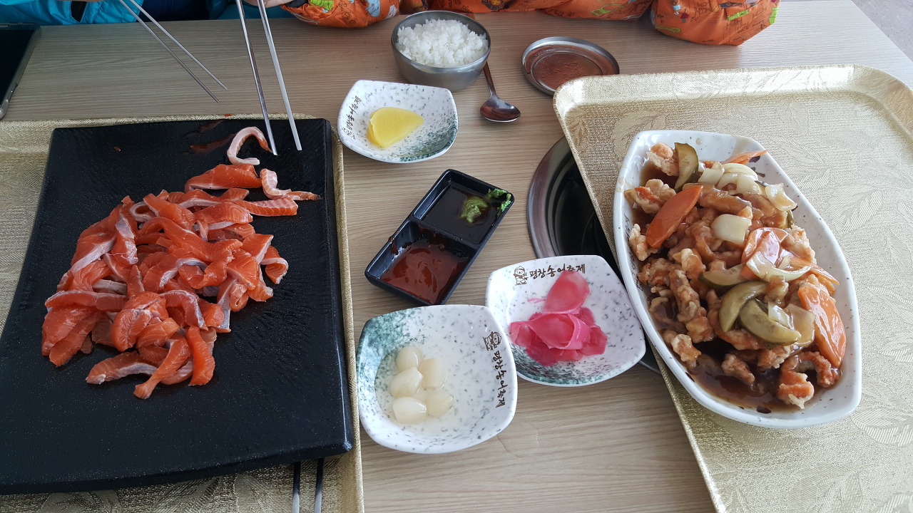 그냥 돈 내고 송어회와 송어 탕수육을 점심 대신 먹고 서울로 올라오려고 들렀습니다.