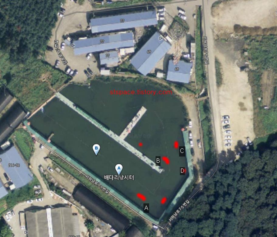 당일 오후 2~3시쯤 사이에 제 시야에 보인 낚은 분들의 위치를 표시해봤습니다.