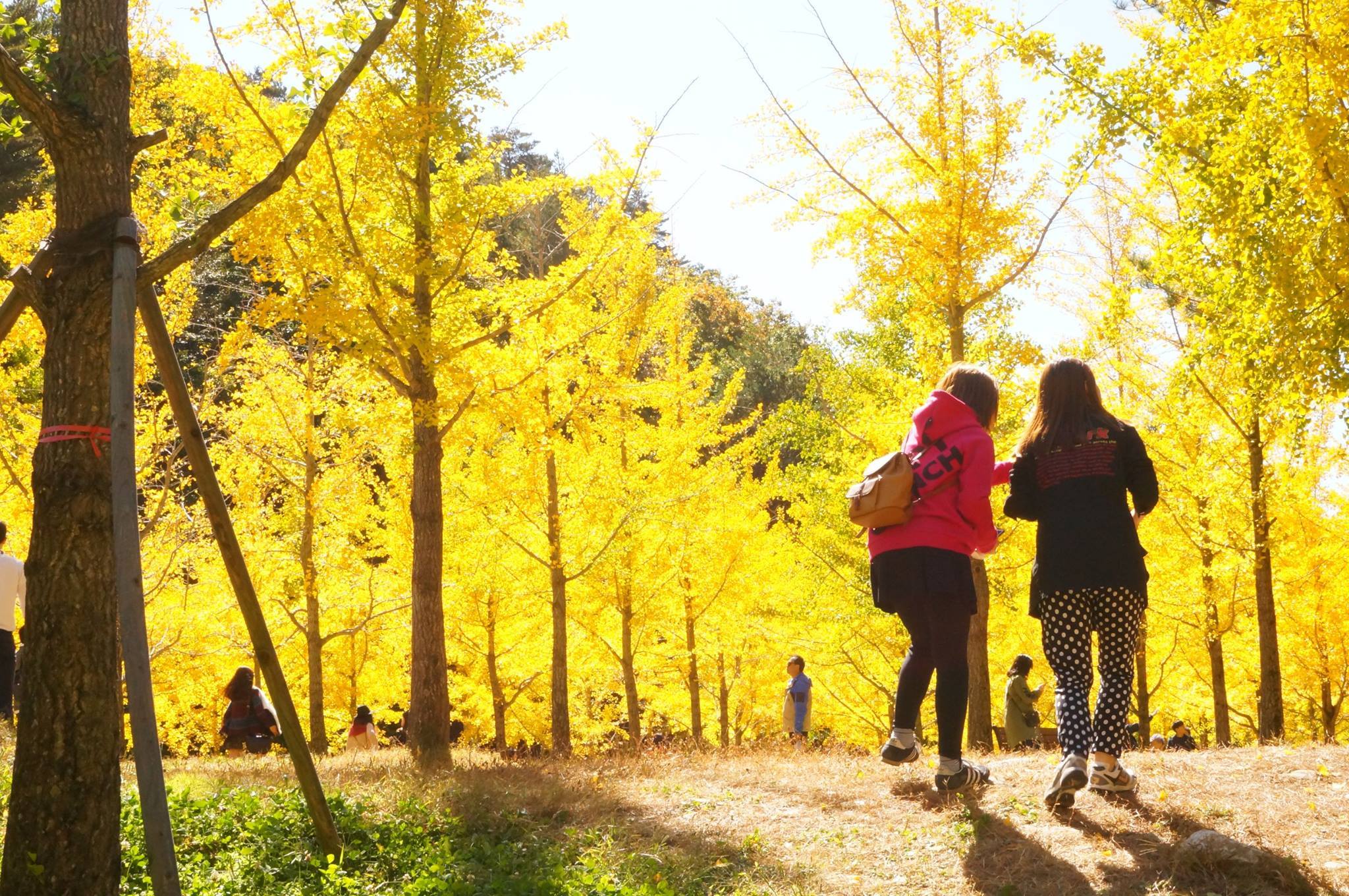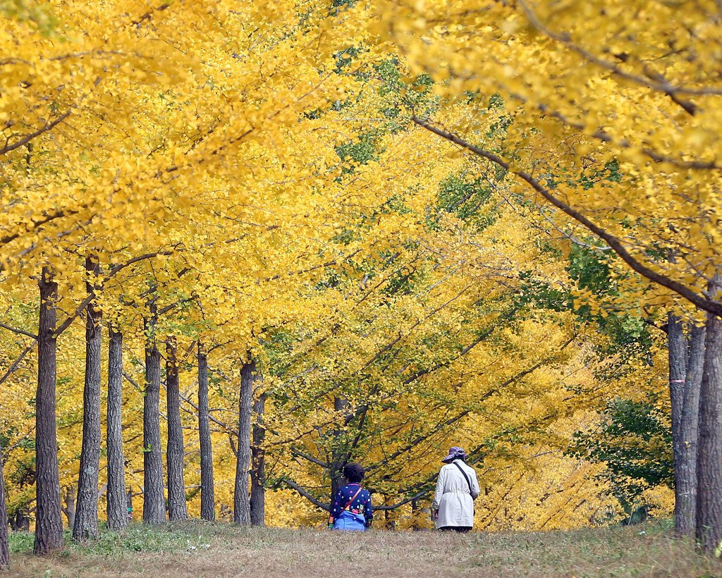 - 은행나무 길: 은행나무숲 중앙에 위치한 긴 나무길은 가장 인기 있는 촬영 장소입니다. 노란 은행잎이 나무 아래 깔려 있는 모습이 장관을 이룹니다.