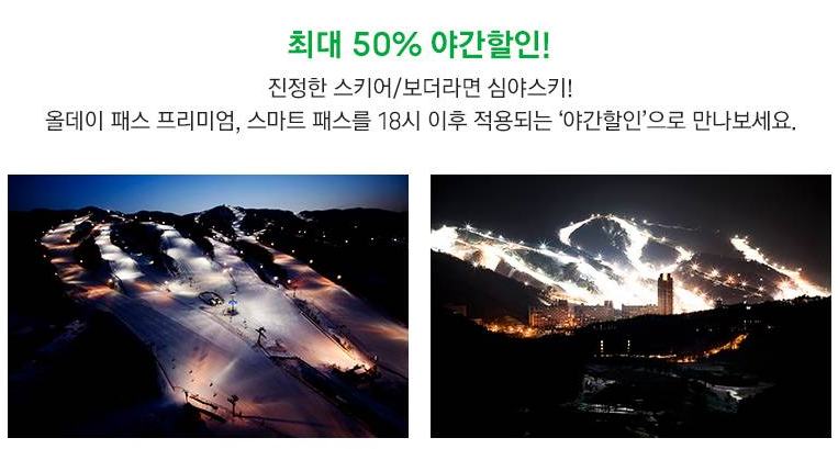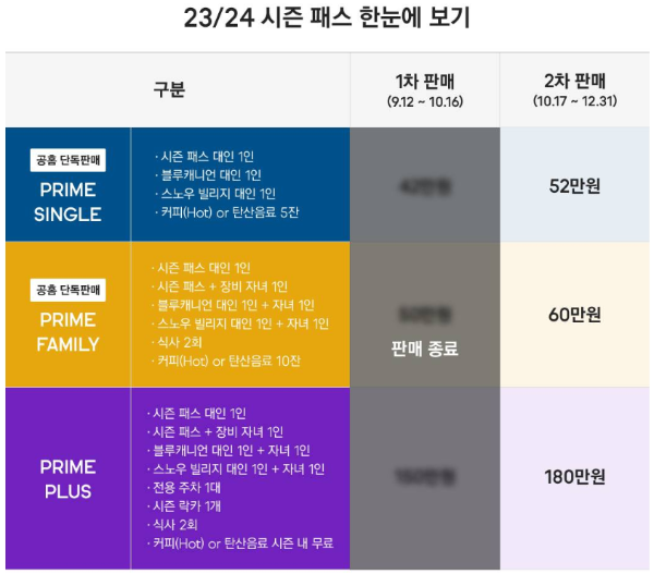 휘닉스 파크 스키장의 시즌권 및 스노우 파크 리프트권 정보