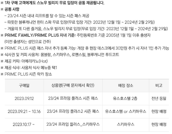 - 프라임 플러스: 전용 주차 및 시즌 락커 이용이 포함된 프리미엄 패키지