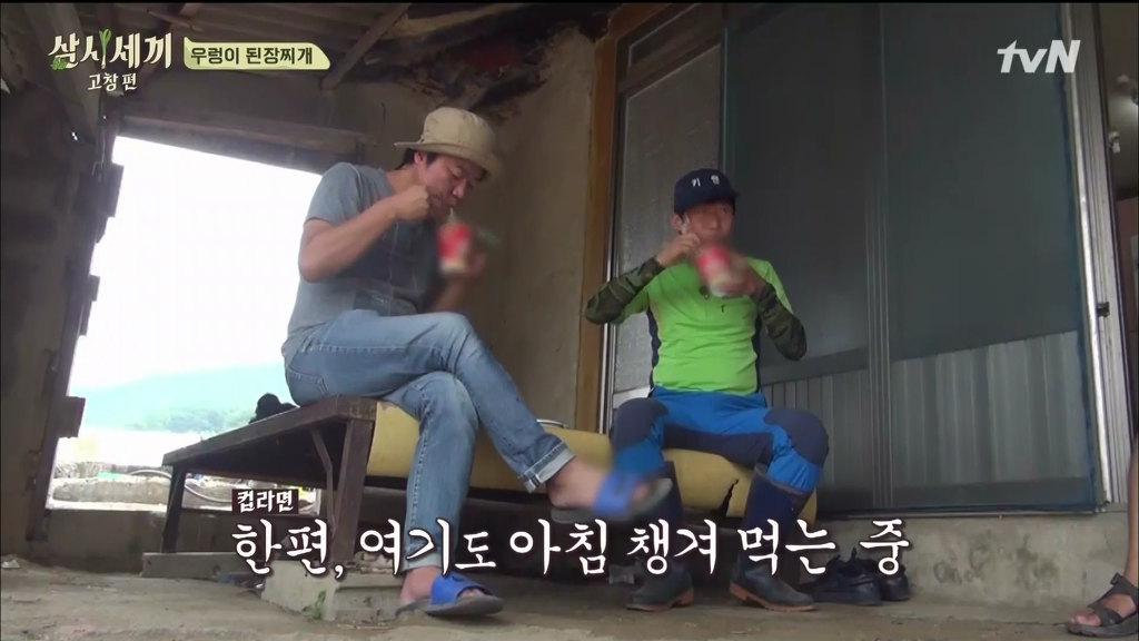 셋을 속이려고 근처 이장님댁에서 잠복하며 아침챙겨 드시는 유해진과 나피디