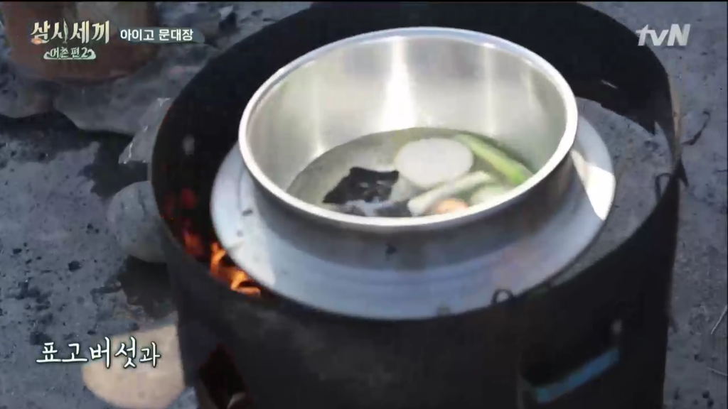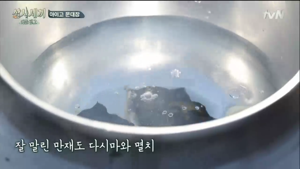 맛국물 맛국물 재료를 다 때려 넣고 맛국물을 우림.