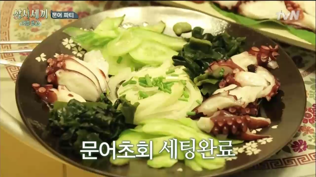 삼시세끼어촌 편 시즌2에서 처음 문어를 잡았을 때 겨우겨우 잡은 커다란 만재도 참문어(돌문어, 피문어)는 산란 직후에 잡혔는지 살짝 힘이 없긴 해도 먹어도 된다는 기쁜 소식에 차 줌마가 요리를 시작합니다.