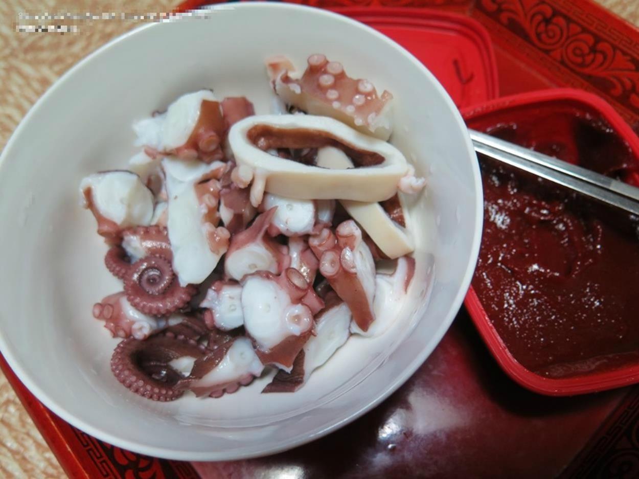 숙회는 데친 문어를 초장이나 기름장에 찍어 먹는 방법.