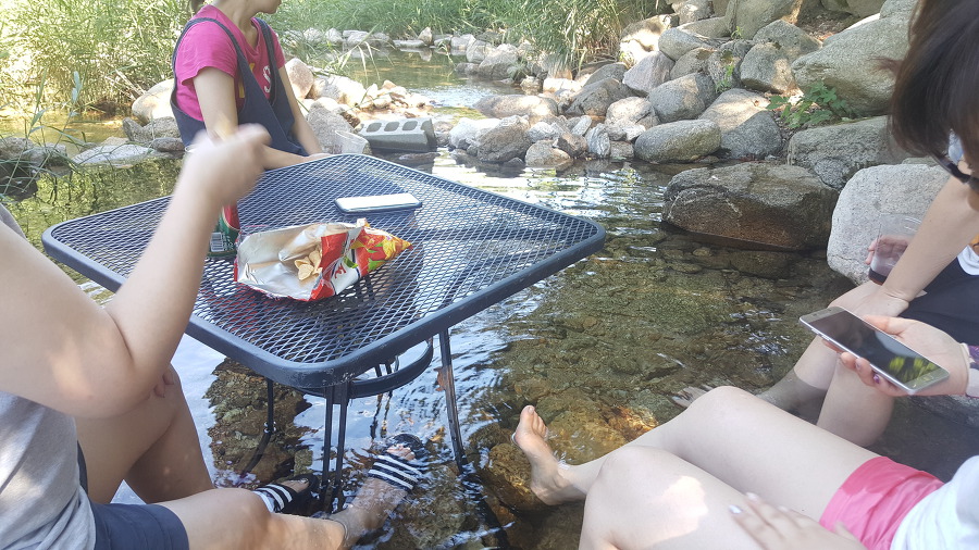 다과를 즐기면서 계곡물에 발담그고 있기 좋다.