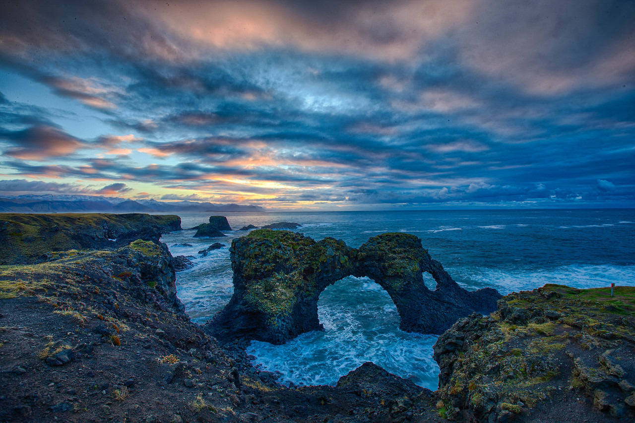 가트클레투르는 스나이펄스네스 반도의 북서쪽 해안에 자리 잡고 있는 천연 바위 아치입니다. 이 바위는 오랜 세월의 자연적 작용으로 인해 형성된 결과로, 바위의 중앙에 자연적으로 형성된 거대한 구멍이 특징입니다. 이 구멍은 대칭적인 원형 형태로, 마치 인위적으로 뚫어 놓은 것처럼 보이지만 실제로는 수천 년에 걸쳐 해안 침식과 파도의 작용으로 만들어진 것입니다.